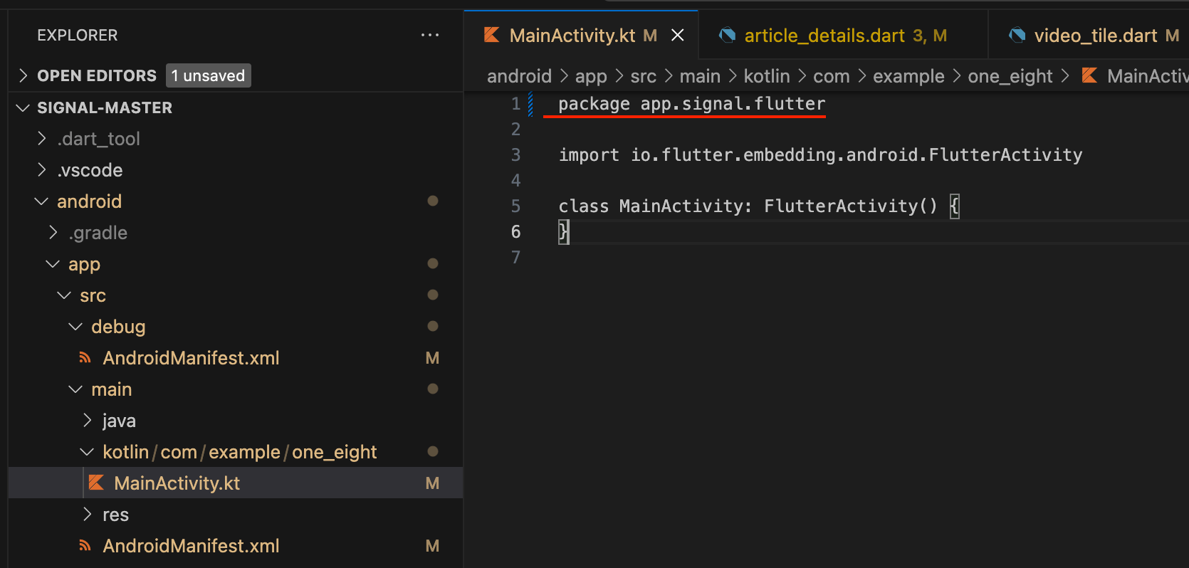 - Under Signal Project, Go to "android > app > src > main > Kotlin > MainActivity.kt"