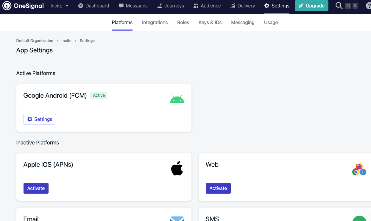 - Refer to OneSignal iOS, then click on "Activate" iOS