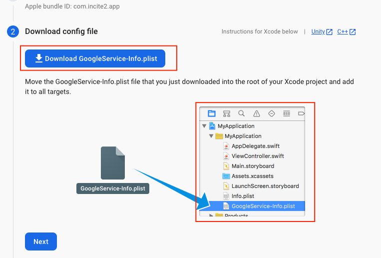 - Download GoogleService-info.plist and replace in your "ios/Runner/GoogleService-info.plist", Click "Next"
