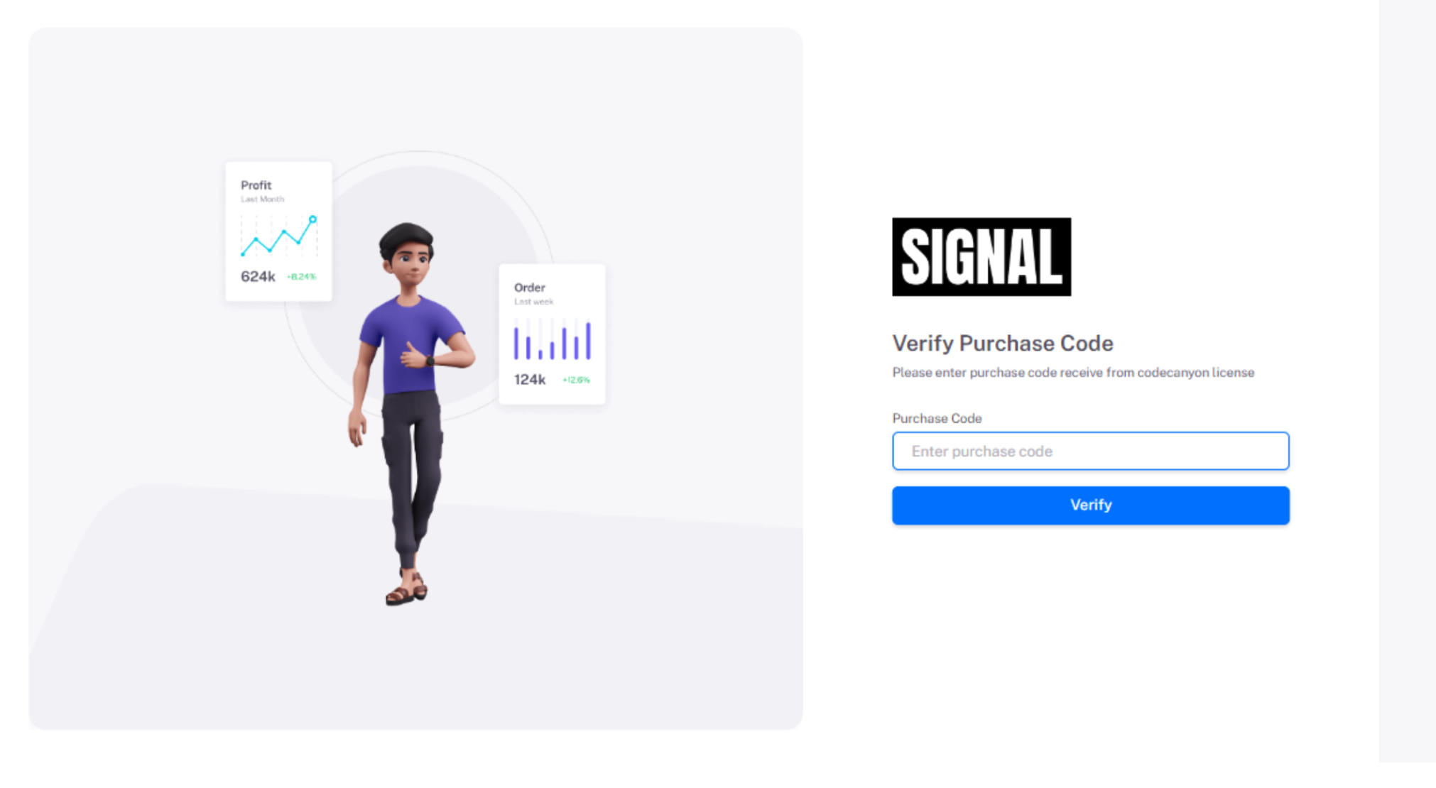 - In this step, enter the 'purchase code' received from CodeCanyon license. Put your purchase code and click on 'Verify'.