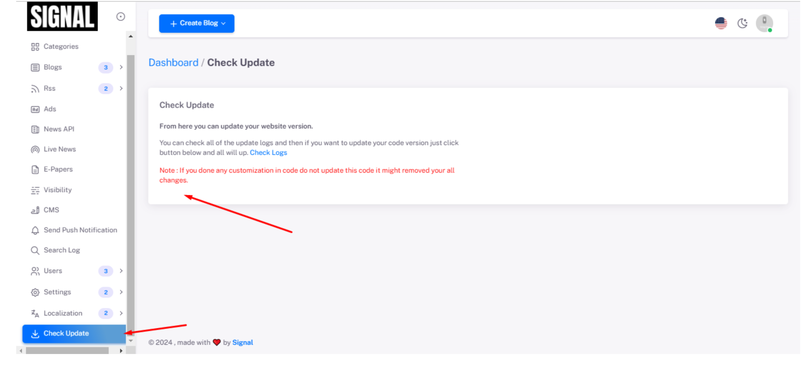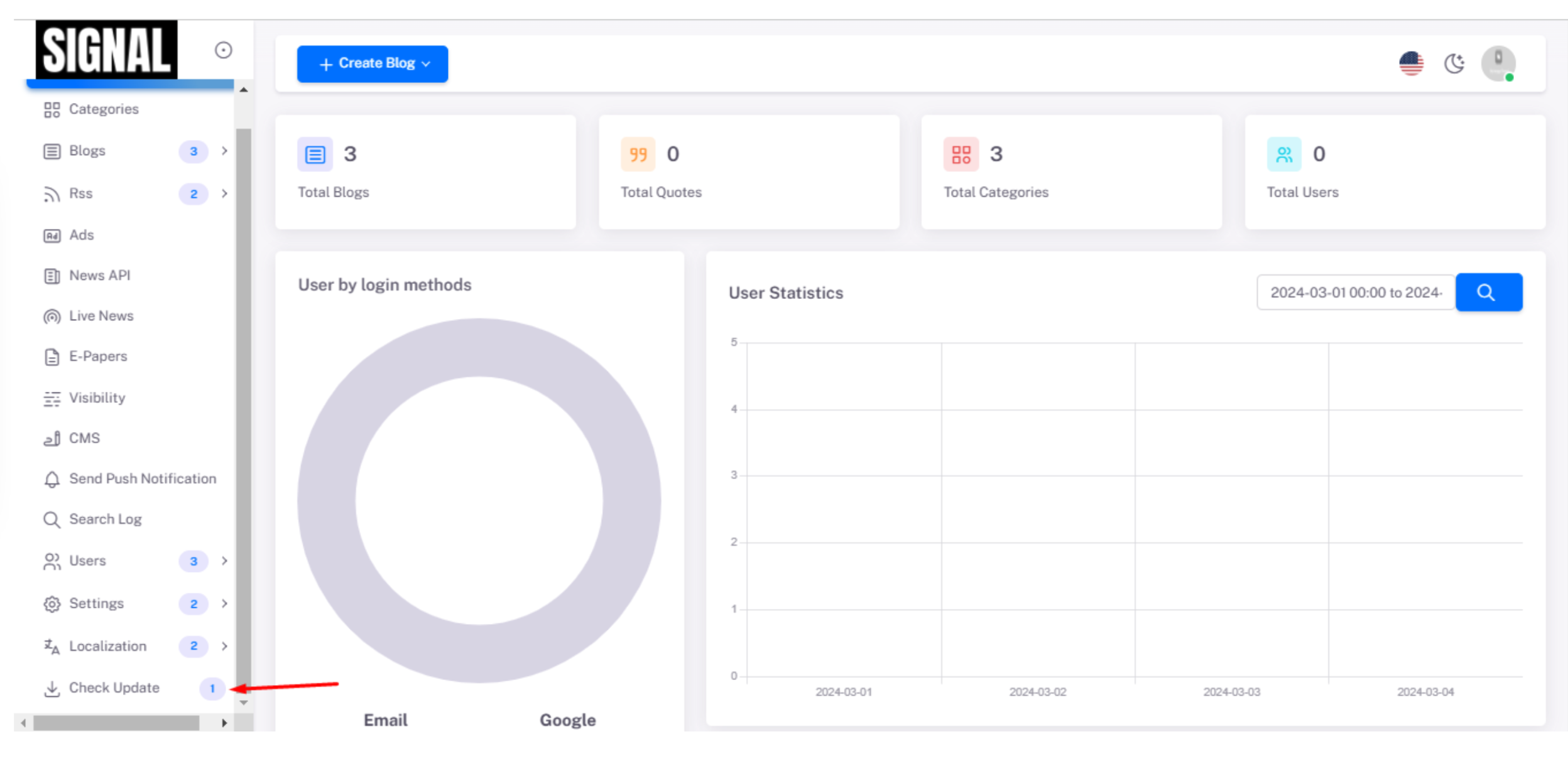 - In the 'Automatic Update' process, when we push any updates to our system, this menu in the sidebar displays the count.