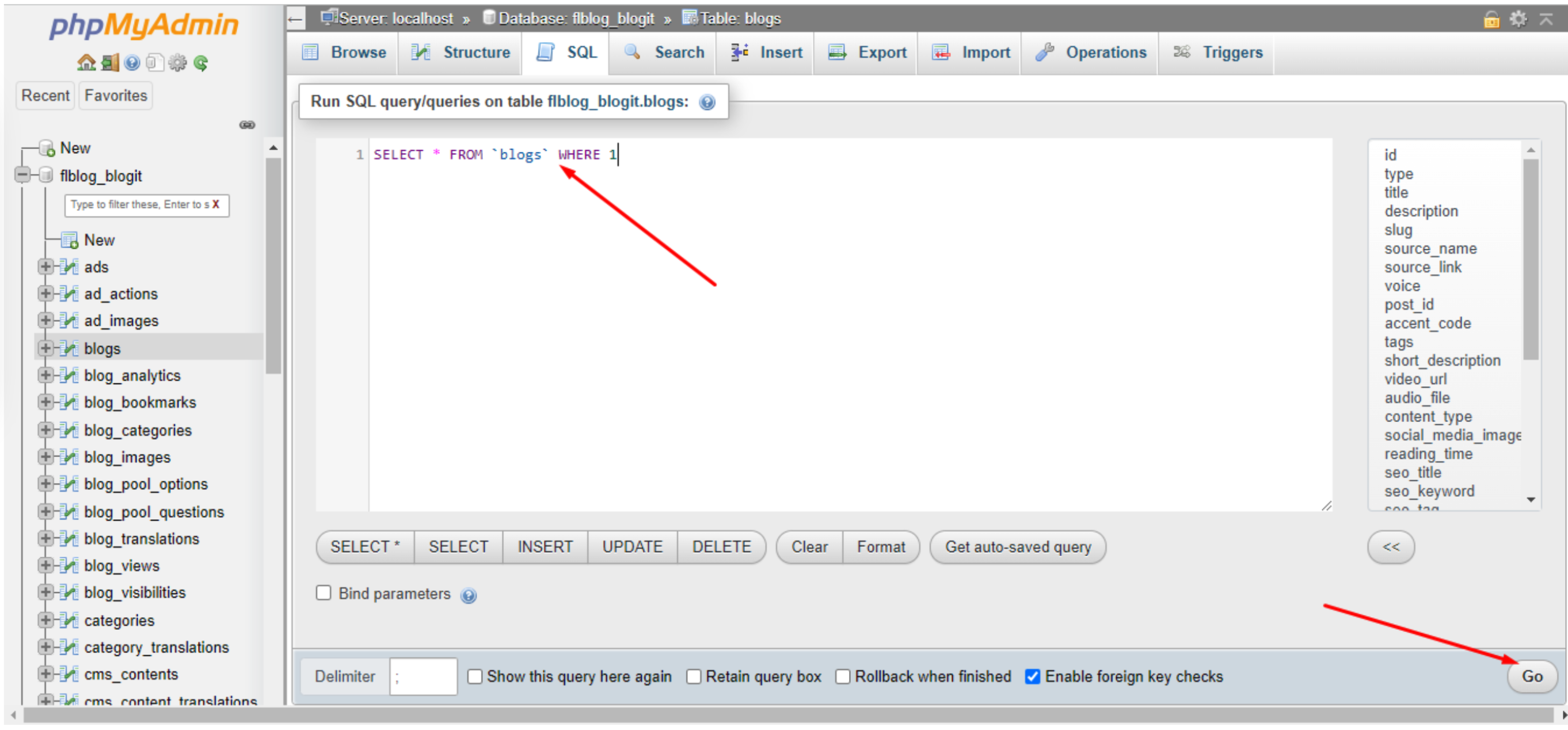 - When the SQL option opens, paste all of your queries and click 'Go' to execute them. Your website is now updated with our latest changes. You're good to go!