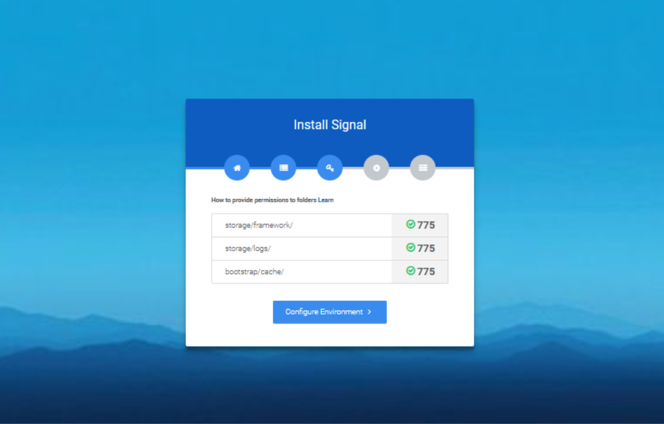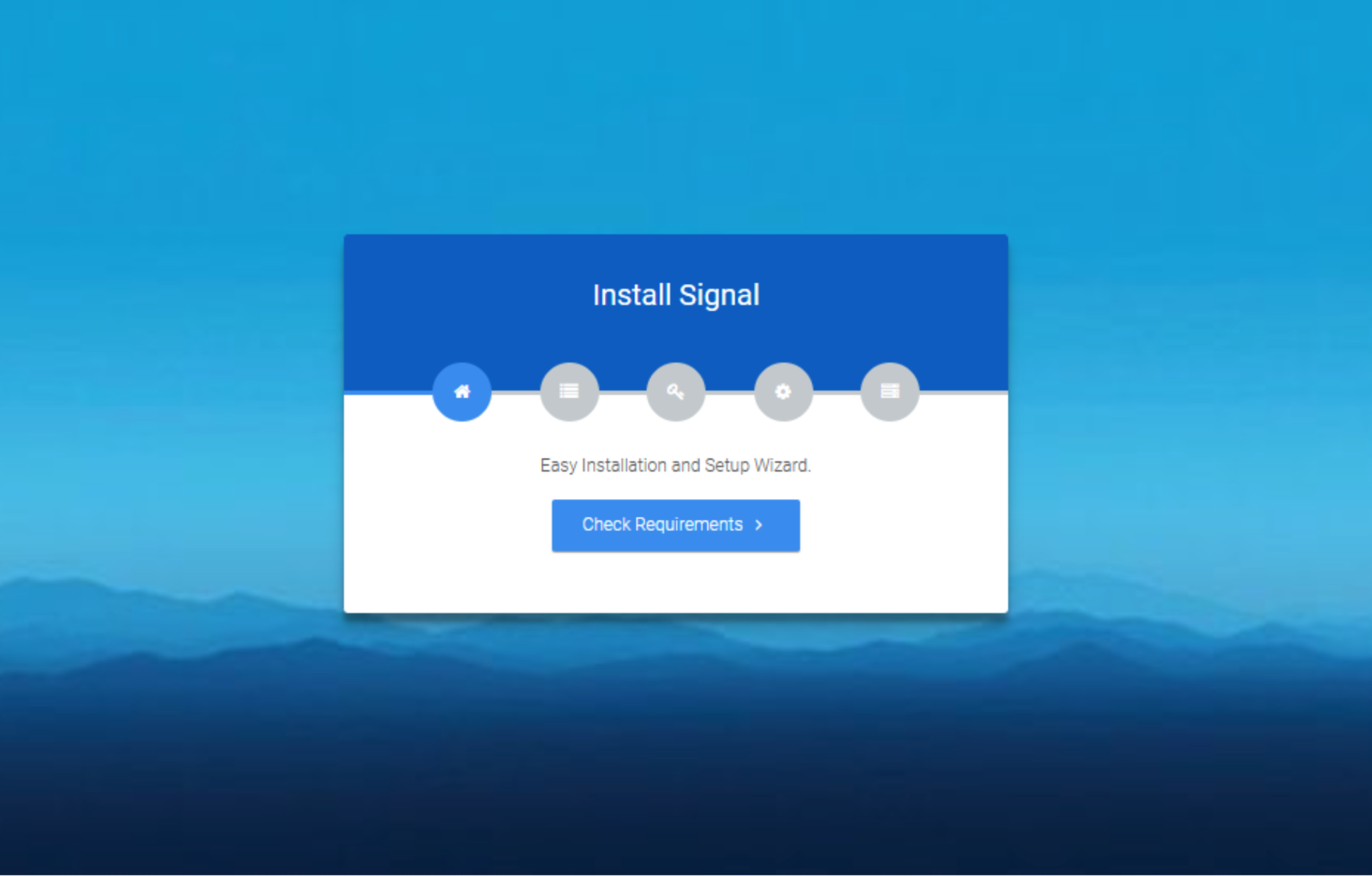 - On opening the site, you will get the setup wizard. Click "Check Requirements"