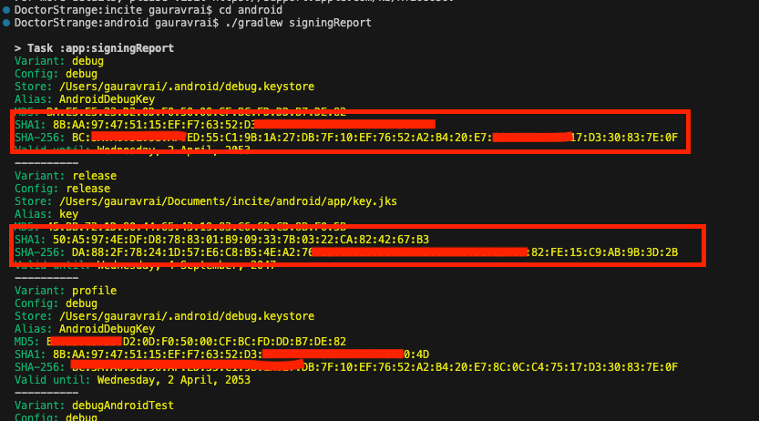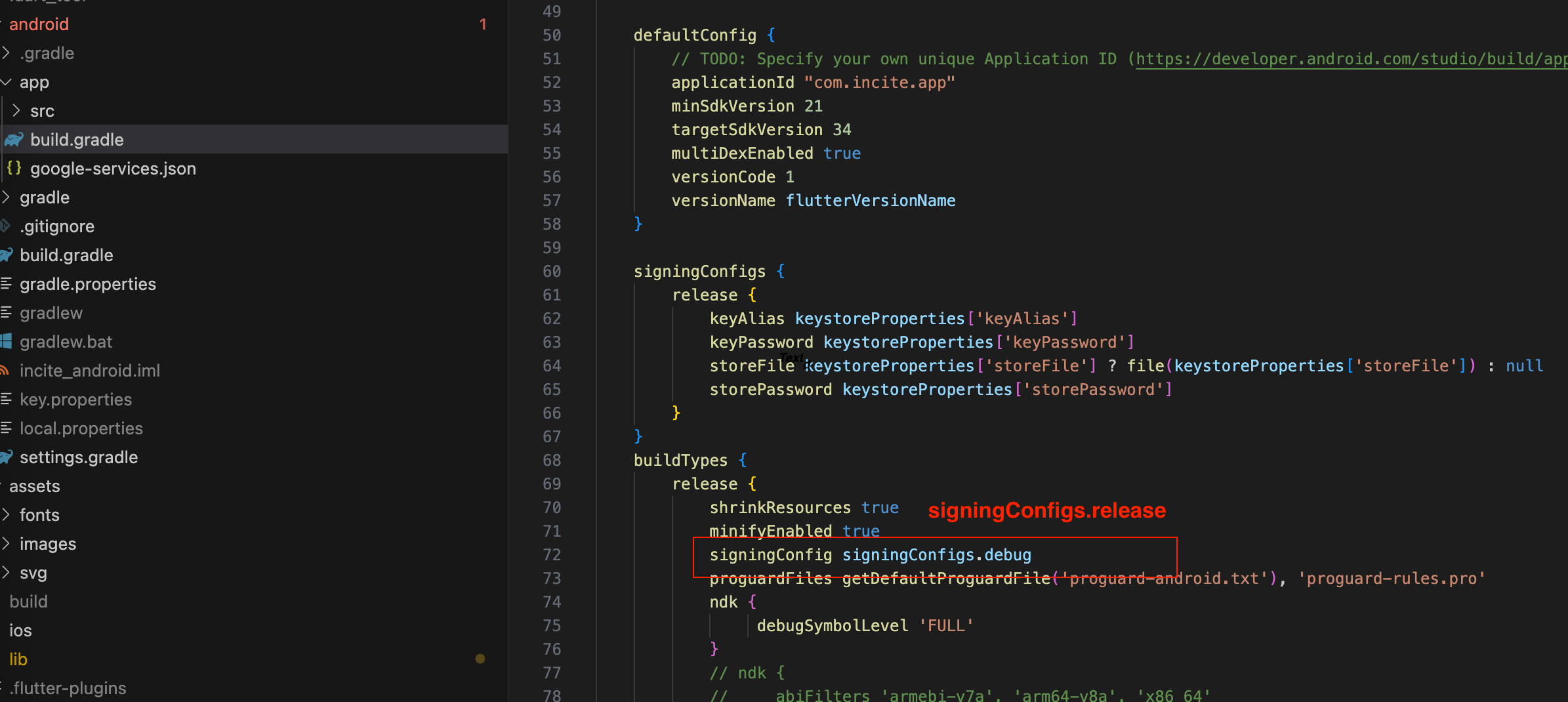 - Before going live, Please change signingConfigs.debug to signingConfigs.release