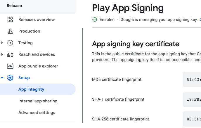 - With Play App Signing, Google manages and protects your app's signing key for you and uses it to sign optimized, distribution APKs that are generated from your app bundles. Play App Signing stores your app signing key on Google's secure infrastructure and offers upgrade options to increase security.